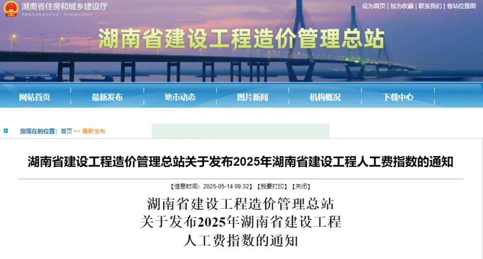 注意!2025年湖南省建設工程人工費指數(shù)發(fā)布,6月1日起執(zhí)行!